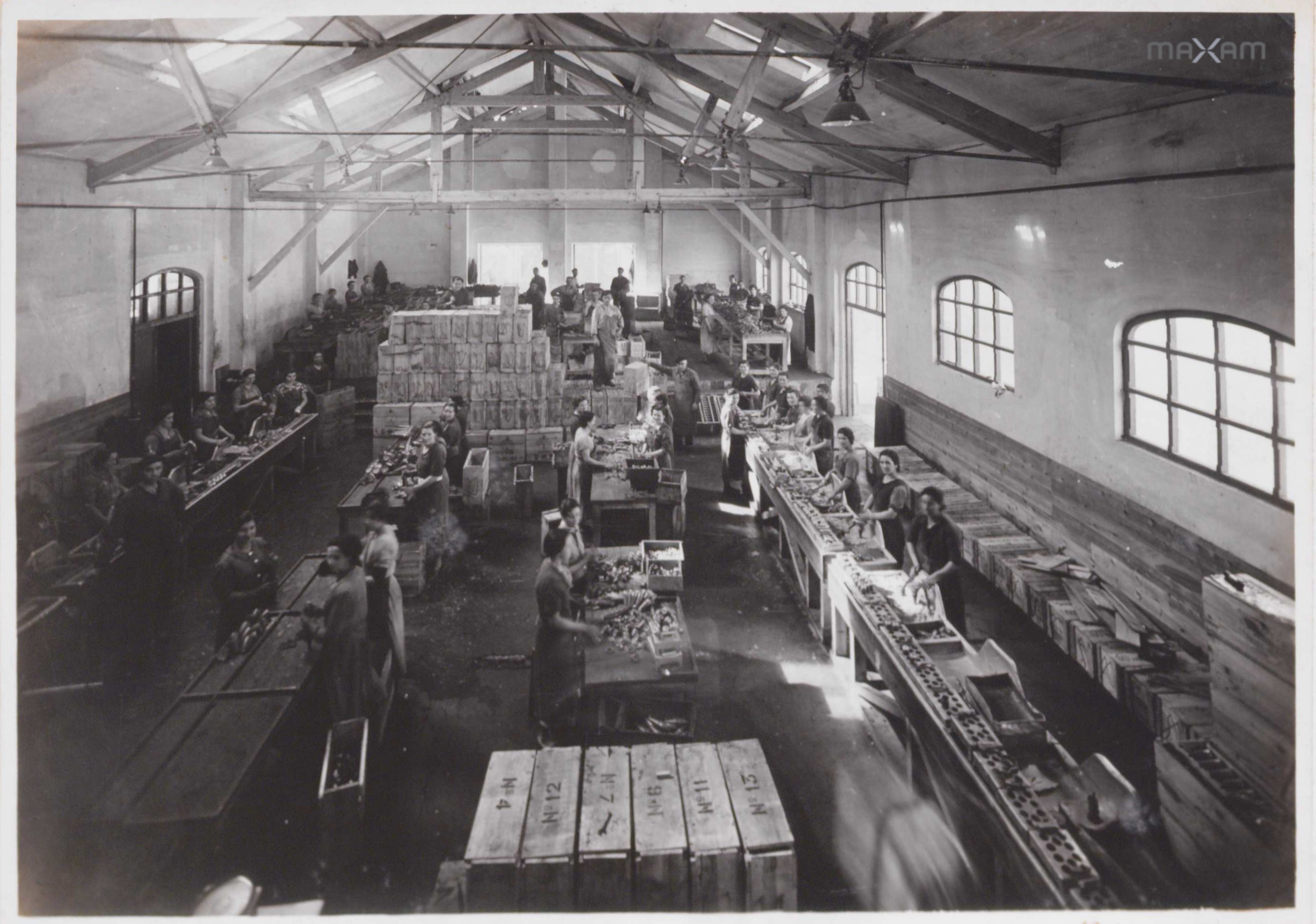 Gerra Zibilean zehar 6,5/7,5 kalibreko karga moldekatuen fabrikazioaren ikuspegia. Argazkian Las Dinamiteras izeneko langileak ageri dira.