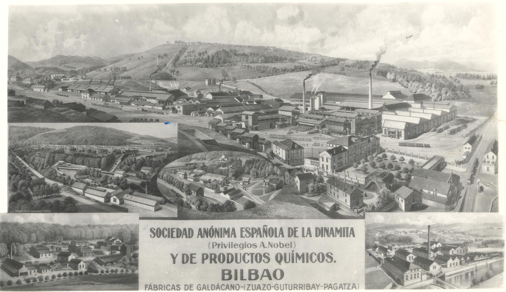 Sociedad Anónima Española de La Dinamita-ren hiru instalazioen fotomuntaketa 1930. urtean egindako: Zuazo, Pagatza eta Guturribai.