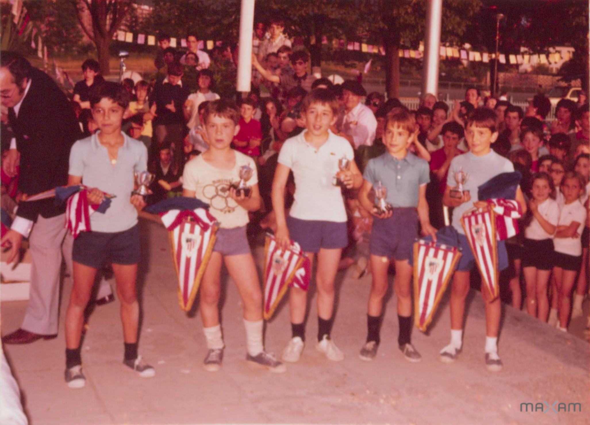 Unión Explosivos Riotinto (ERT) erakundearen sariak jaso dituzten lau haurren argazkia. Eskuetan, kopak eta banderatxoak daramatzate.
