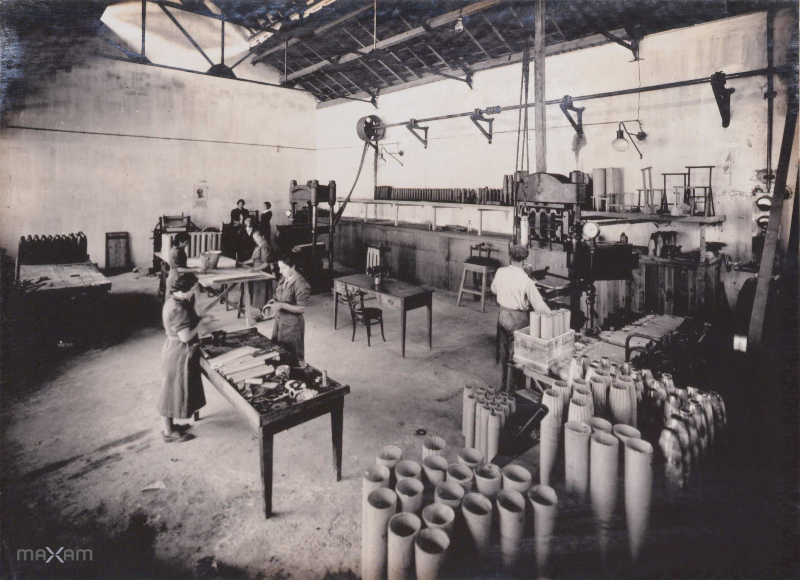 Argazkian, Las Dinamiteras izeneko Moldekatutako kargetarako kutxatilak nola prestatzen dituzten ikusten da.