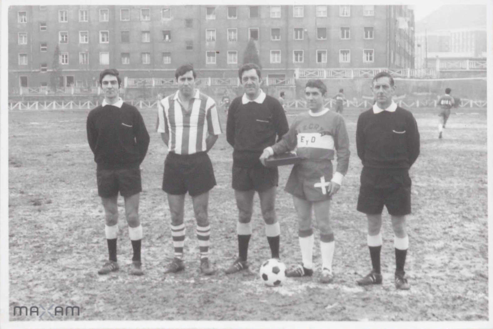 MAXAM-86 | Dinamita futbol taldeko kapitaina, beste kapitain batekin eta epaileekin | Dokumentu-unitate bakun | [entre 1940 y 1950] | View |